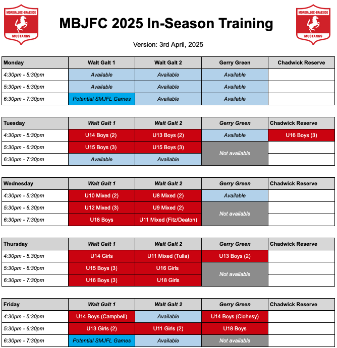 Training Times